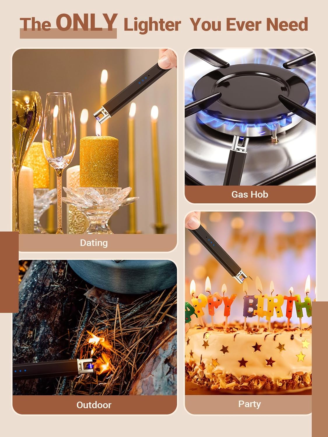 [Longer Battery Life & Lower Sound] 300-500 usage times provided for you, after a full charge of CAREVER upgraded rechargeable arc candle lighter (depending on your frequency of use). Thanks to our leading tech, the cool gadget lighters have lower noise than other styles during use, which is high-voltage power generation, please use it with confidence. Greener and more economical, different from a traditional lighter, rechargeable electric lighter is windproof, splashproof, no fluid, no flame
